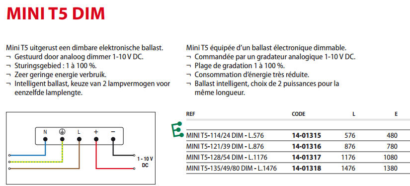TL5 ARMATUUR 1X 28/54 T5 G5 117,6cm dimbaar 0-10V