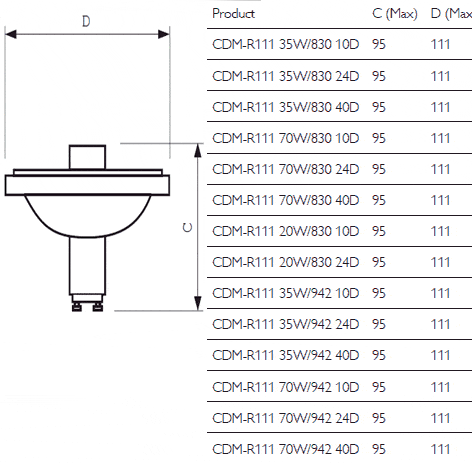 Philips MasterColour CDM-R111 70W/942 GX8.5 10D