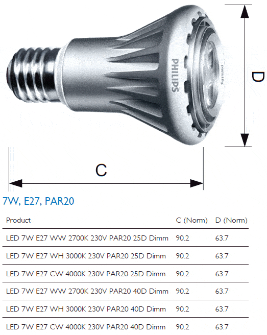 Philips Master LEDspot D 6.5-50W 3000K PAR20 40D