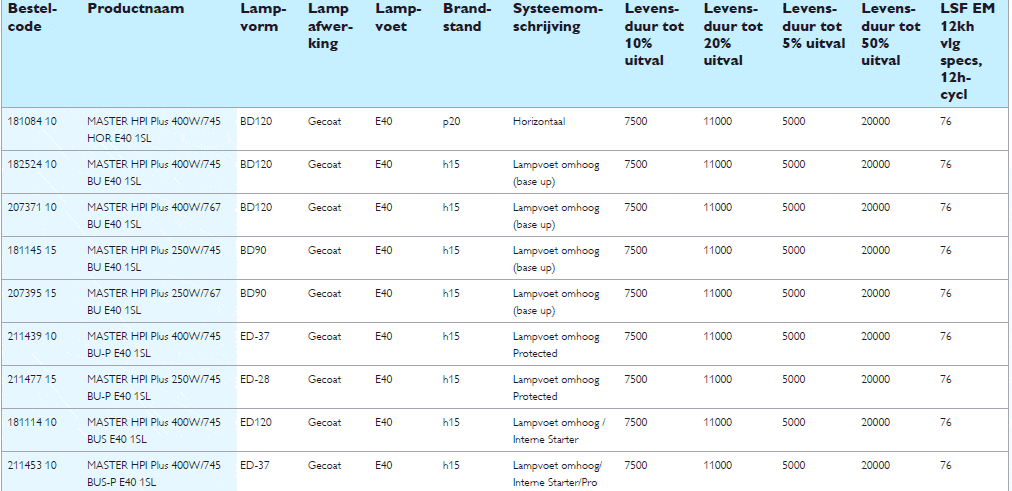 Philips Master HPI Plus 250W/645 BU E40 1SL
